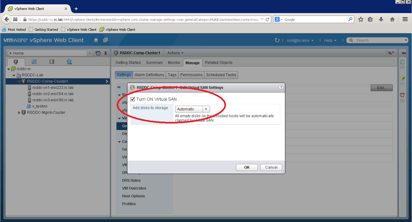 Now we are going to enable VSAN on RSDDC-CompCluster. After VSAN is turned on, VirtualCenter will perform following operations