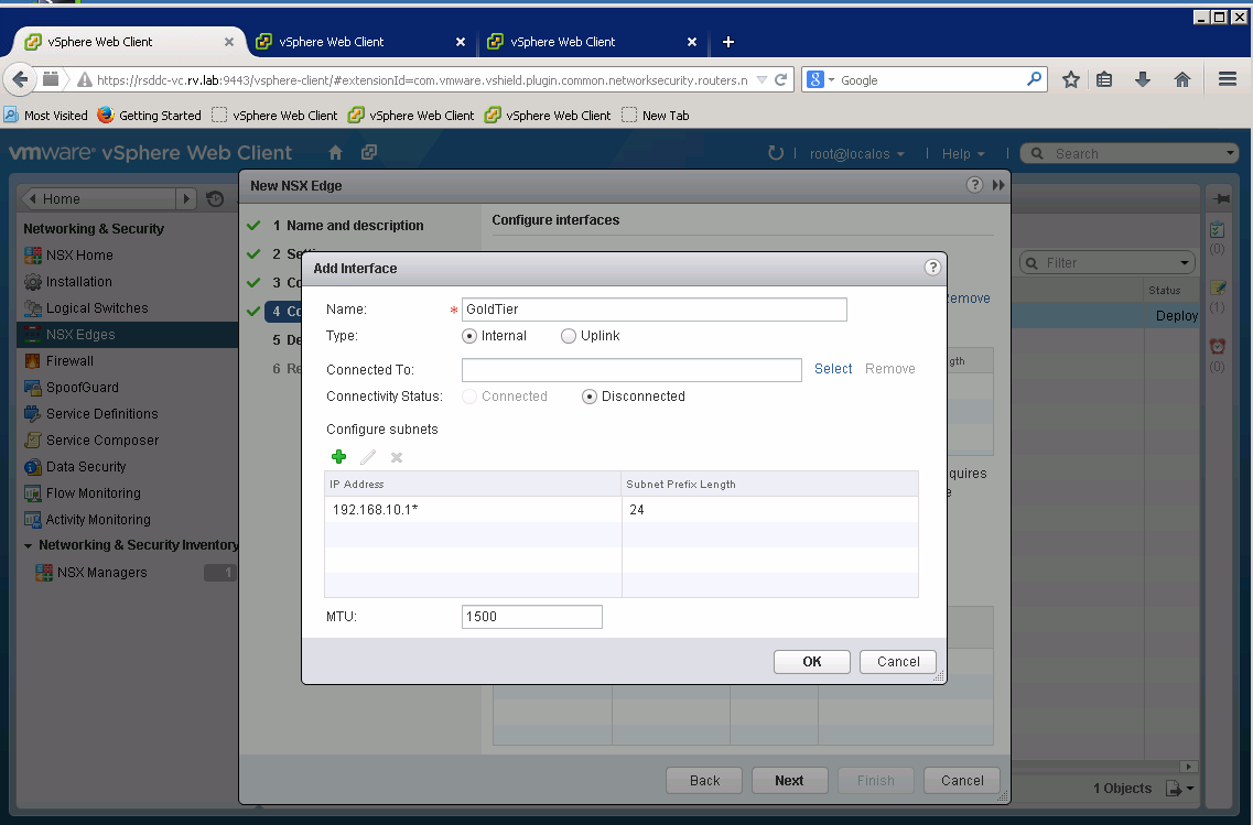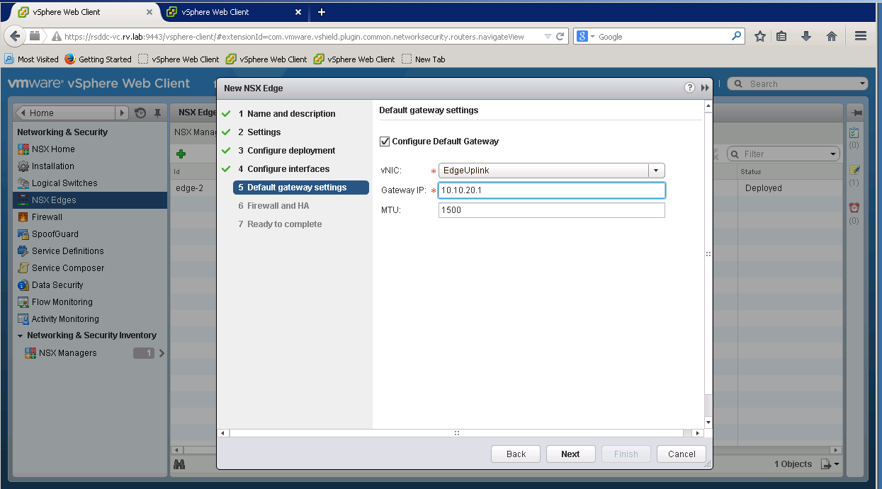 Now let us deploy NSX edge to our network to provide advanced NSX Services like Firewall, DHCP, VPN etc.