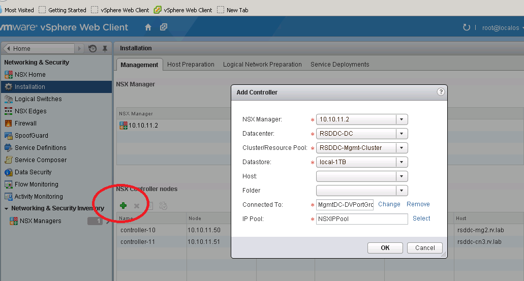 We are going to add two NSX Controller one for RSDDC-MgmtCluster and one for RSDDC-CompCluster. Add new NSX Controller to RSDDC-MgmtCluster and RSDDC-CompCluster
