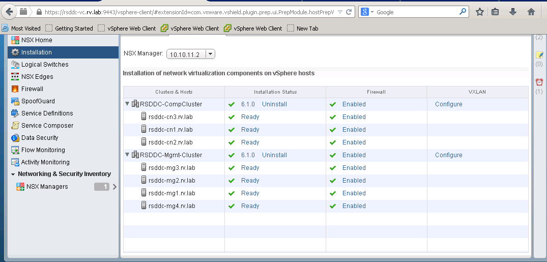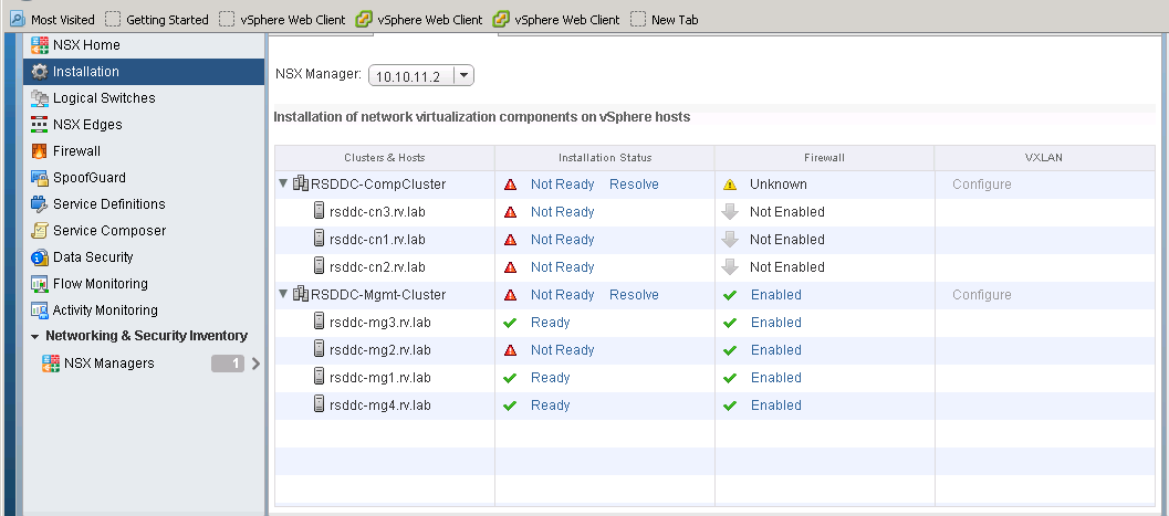 NSX Manager installs necessary components on all hosts in cluster and then hosts are ready to configure. After successful deployment, you will notice all ESXi Hosts in the cluster are in Ready state